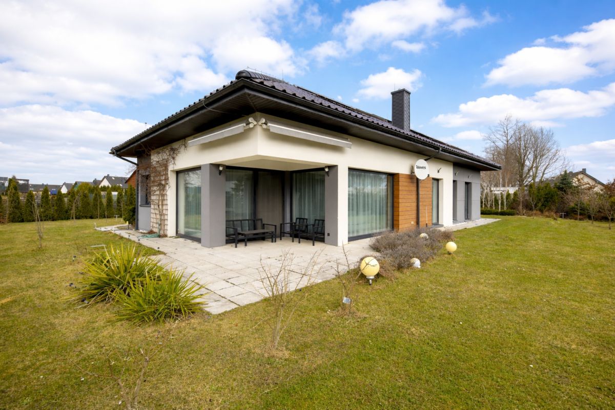 Nieruchomość typu bungalow usytuowana jest na słonecznej działce o powierzchni 1070 m2. Powierzchnia użytkowa budynku wraz z dwustanowiskowym garażem wynosi 166,32 m2. Poprzez adaptację poddasza, istnieje możliwość uzyskania dodatkowej powierzchni mieszkalnej ( +ok. 160 m2).