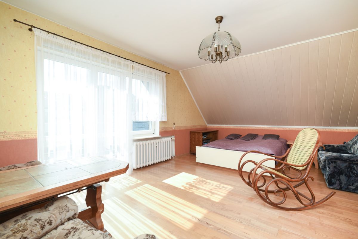 Poddasze: otwarta przestrzeń z oknami, umożliwiająca aranżację np. dwóch kolejnych pokoi.