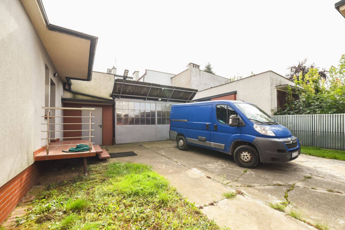 Część usługowa przylega do budynku mieszkalnego, jednak ma niezależne wejście z zewnątrz. W budynku wydzielono przestrzeń z przeznaczeniem mieszkalnym jako niezależna kawalerka z kuchnią i łazienką lub jako zaplecze socjalne dla pracowników oraz warsztat idealny pod działalność usługową: warsztat samochodowy, pracownia, magazyn, biuro, usługi rzemieślnicze.