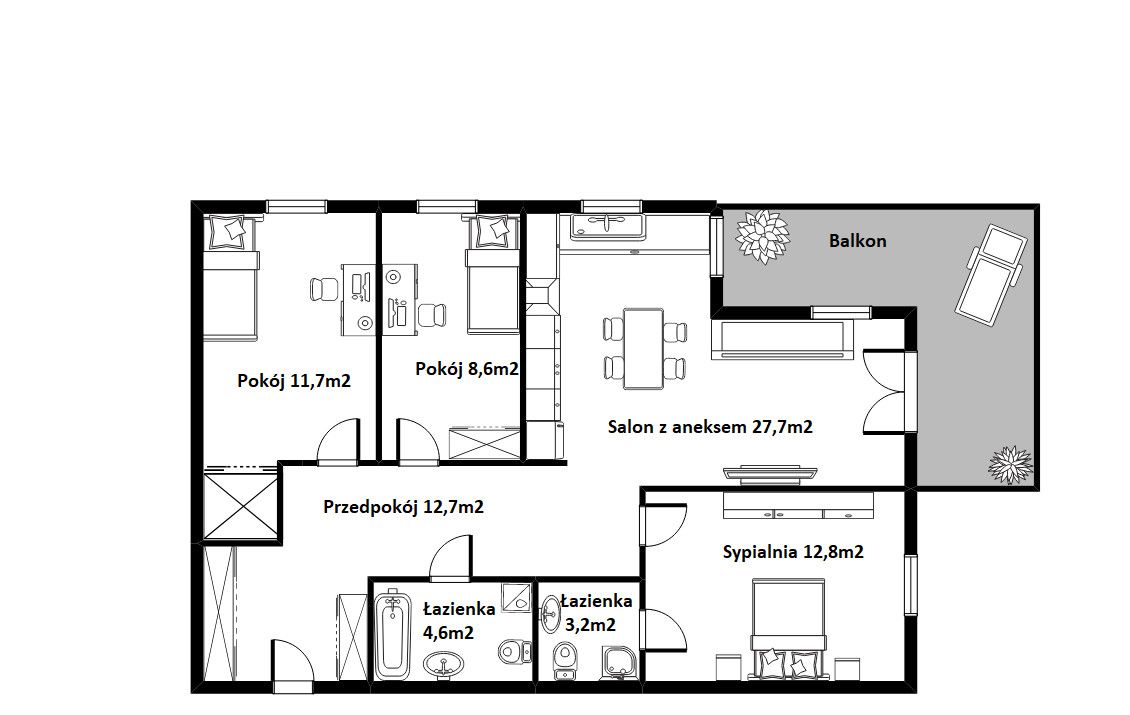 – pokój- 11,7 m2,
