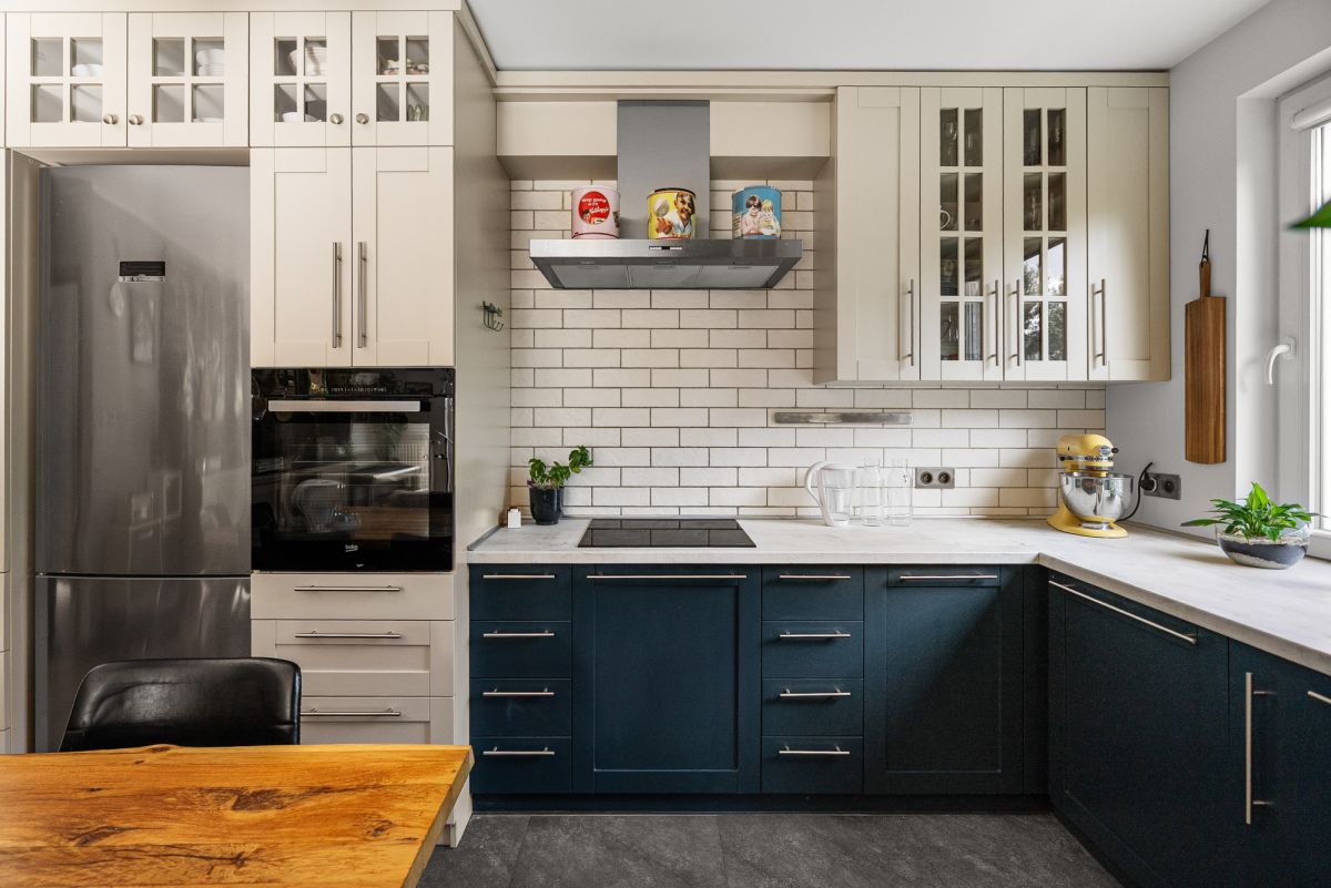 Kuchnia w zabudowie stolarskiej w jasnych barwach wraz ze sprzętem AGD.