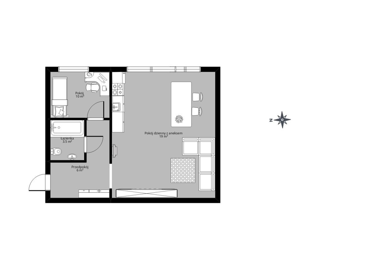 – pokój dzienny z aneksem kuchennym o powierzchni 19 m2,