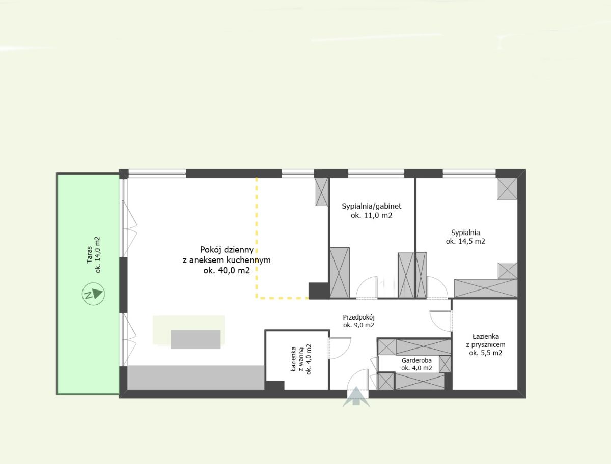 – sypialnia ok.14,5m2,