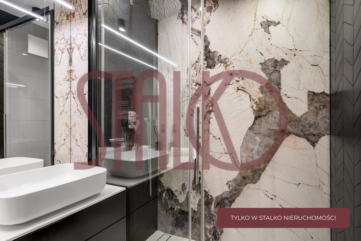 Łazienki: jedna z wanną, druga z prysznicem oraz wbudowanym nagłośnieniem, ogrzewanie podłogowe.