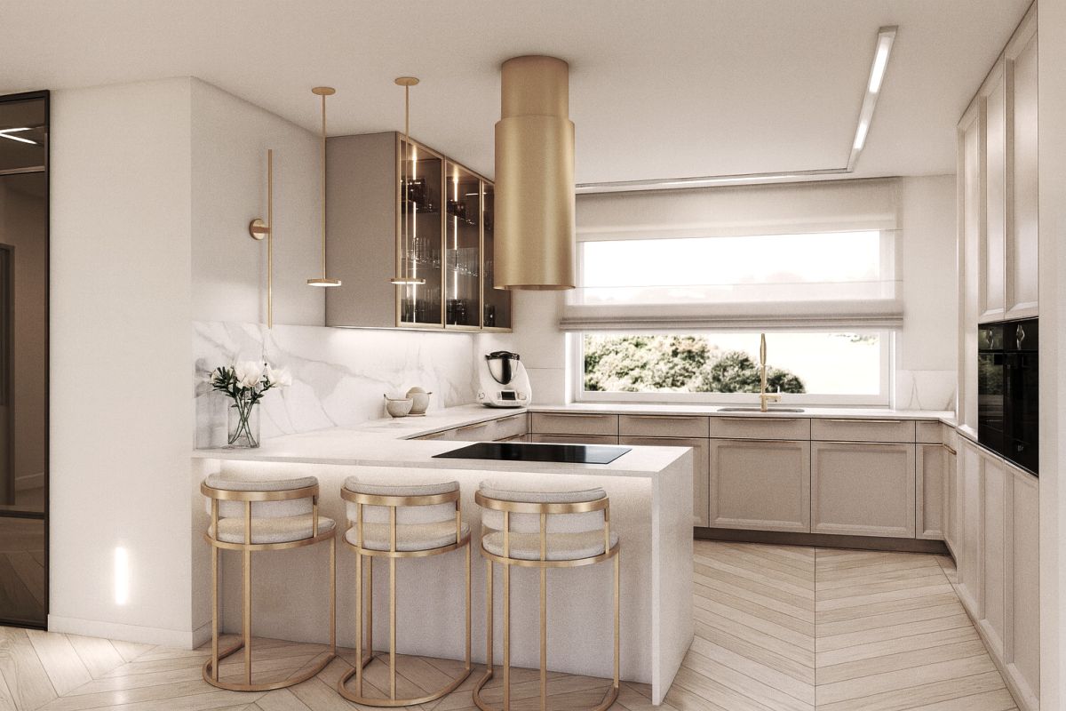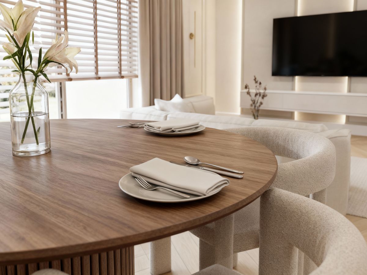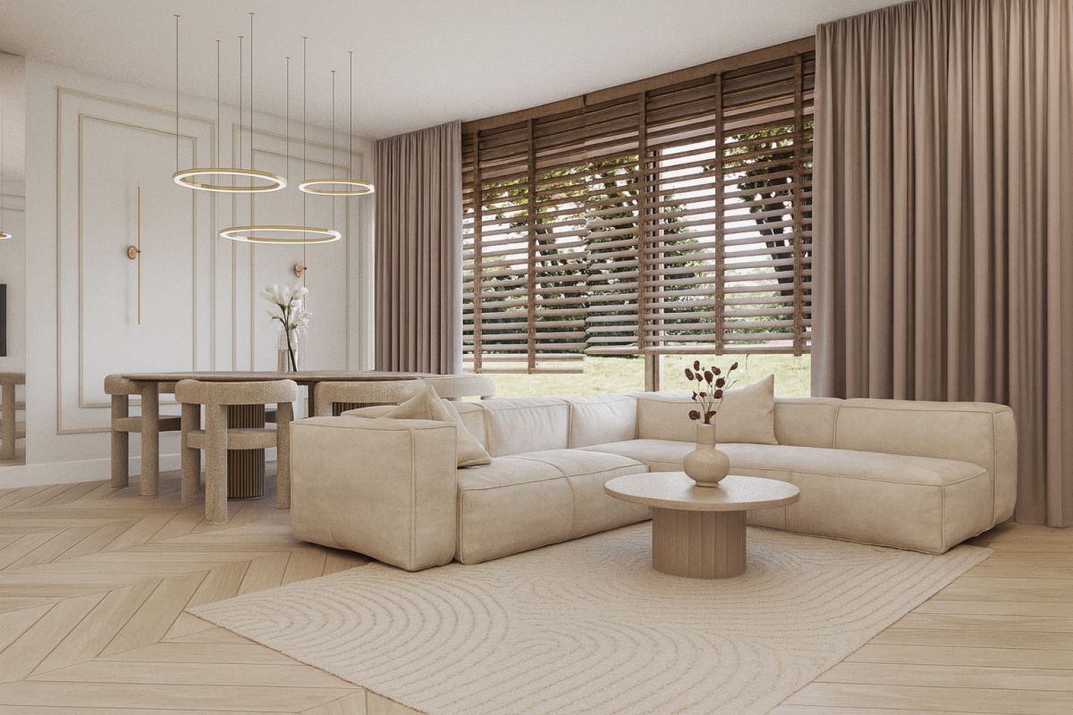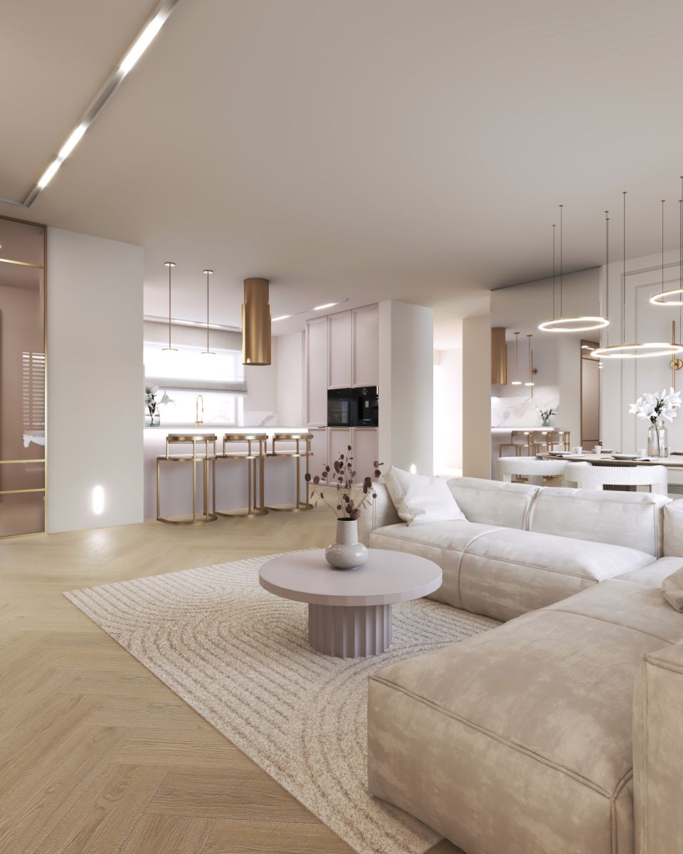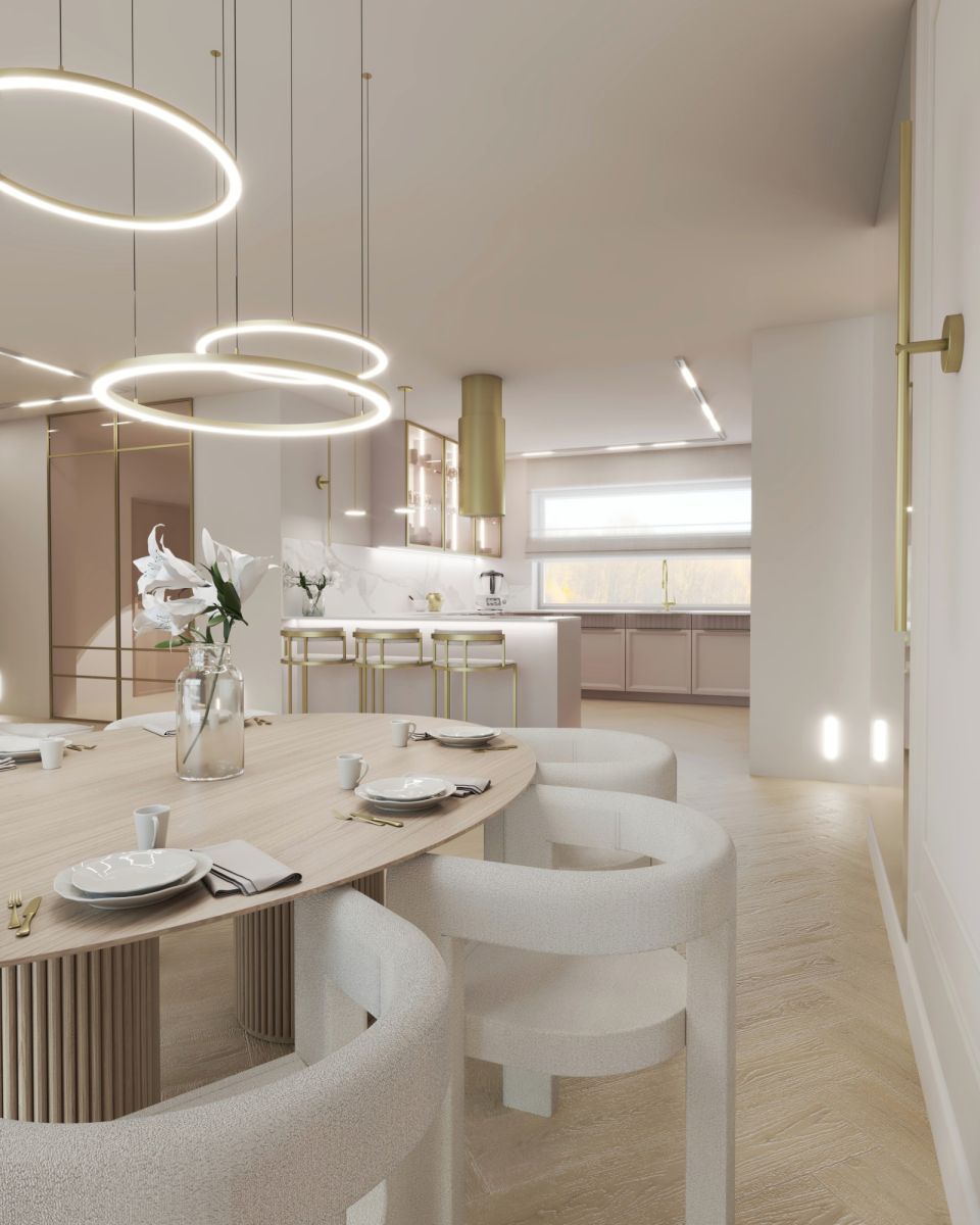 Wnętrze zostało zaprojektowane z myślą o wygodzie mieszkańców- przestronny salon, nowoczesna kuchnia z jadalnią, komfortowe sypialnie oraz eleganckie łazienki tworzą harmonijną i funkcjonalną całość.