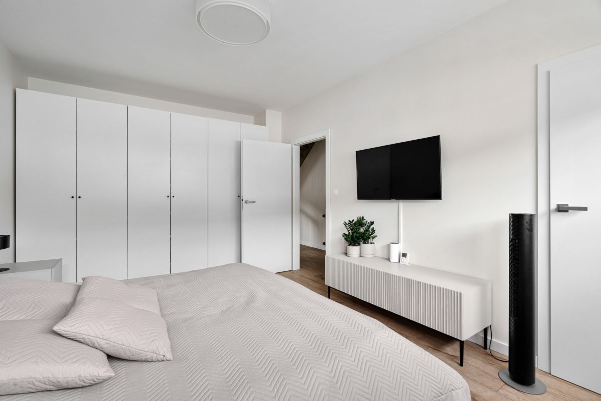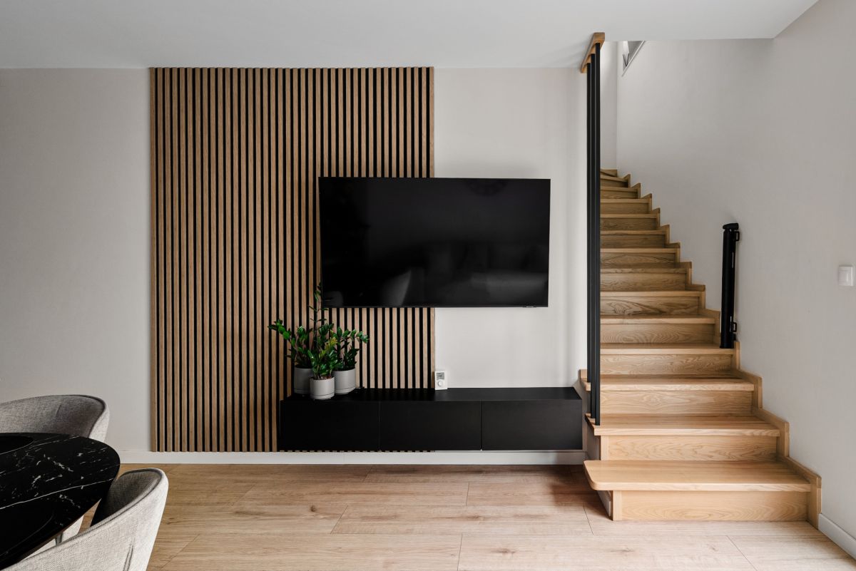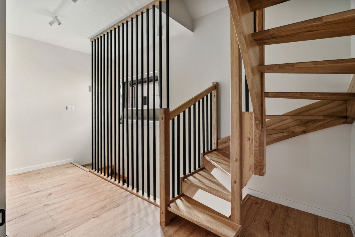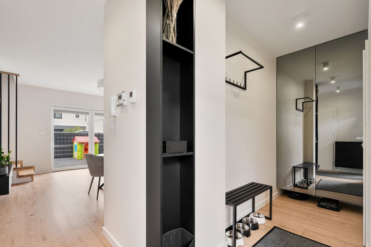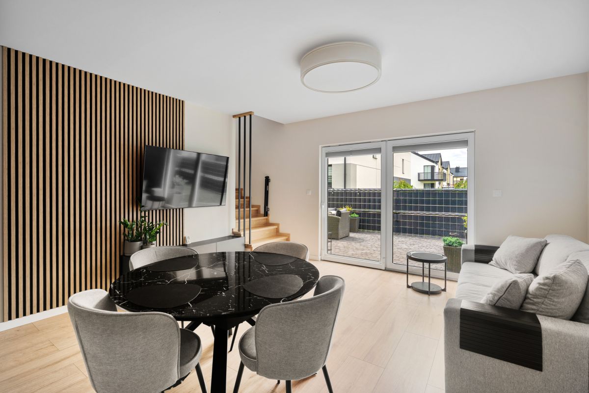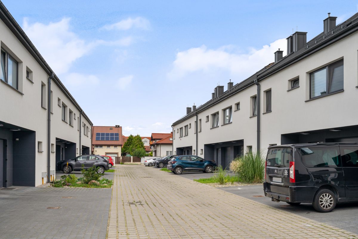 Nowoczesny, dwupiętrowy dom w zabudowie szeregowej, o powierzchni całkowitej 154,94 m2, użytkowej 104,94 m2.