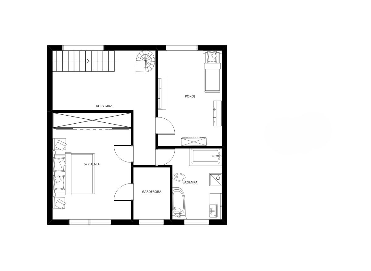 – zaadaptowano na przestrzeń sypialnianą, ale może zostać przystosowane według indywidualnych potrzeb o powierzchni całkowitej- ok. 50m2.