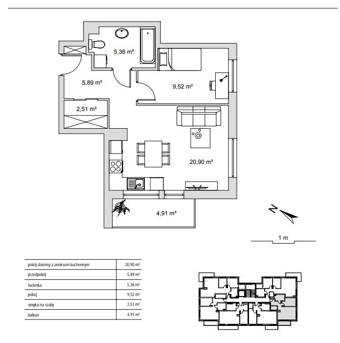 Mieszkanie z balkonem zlokalizowane na nowo powstającym osiedlu w Rumi.