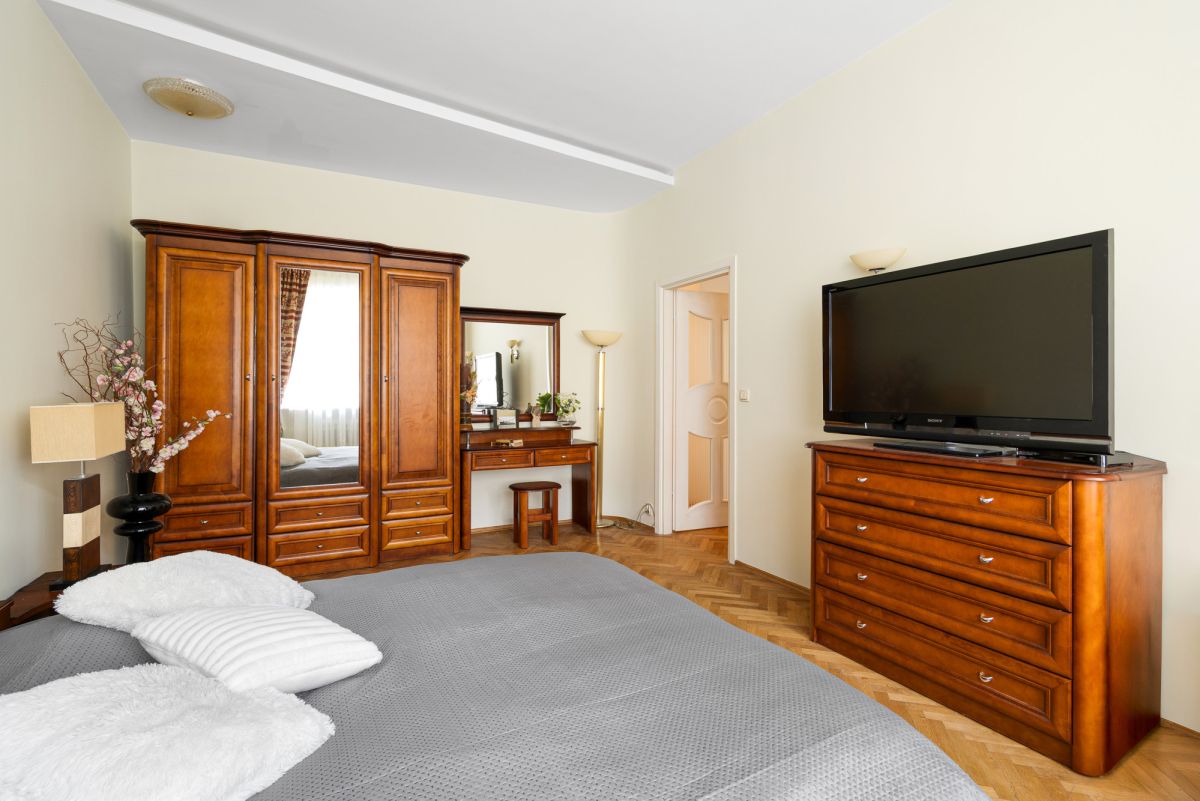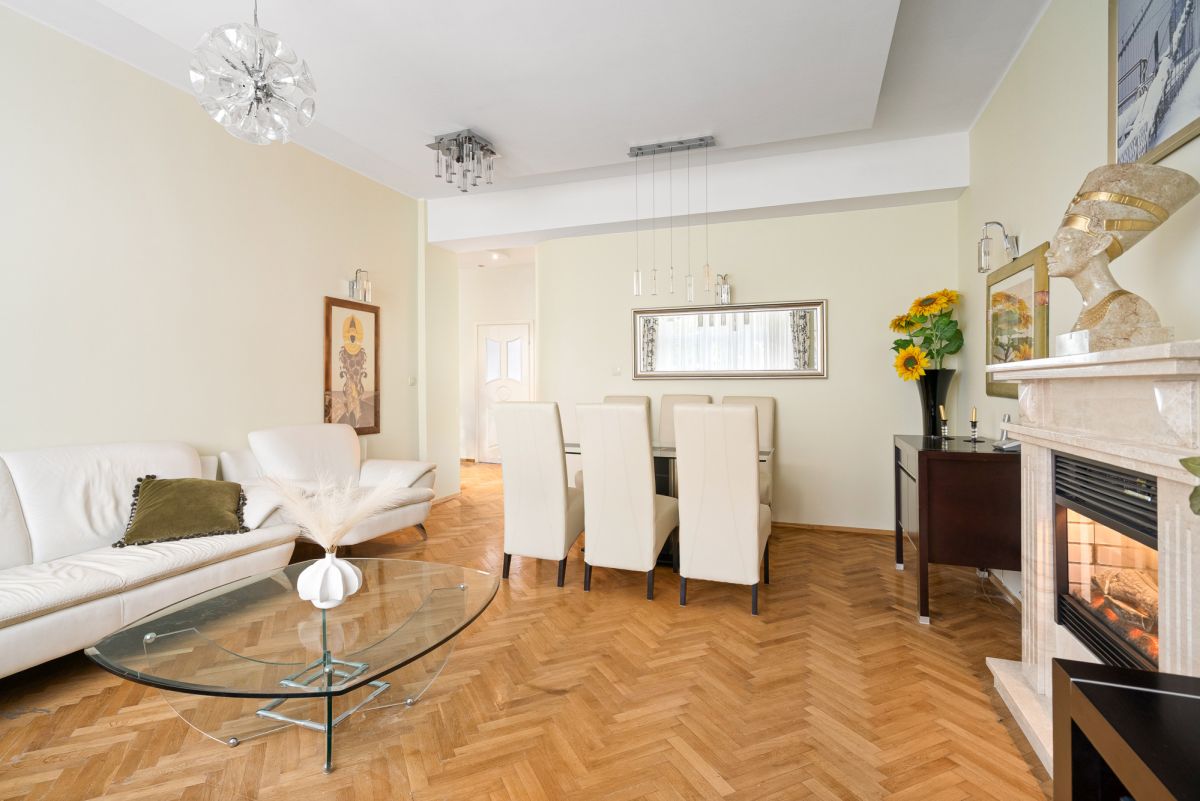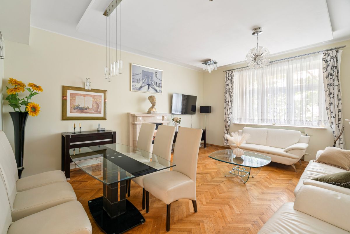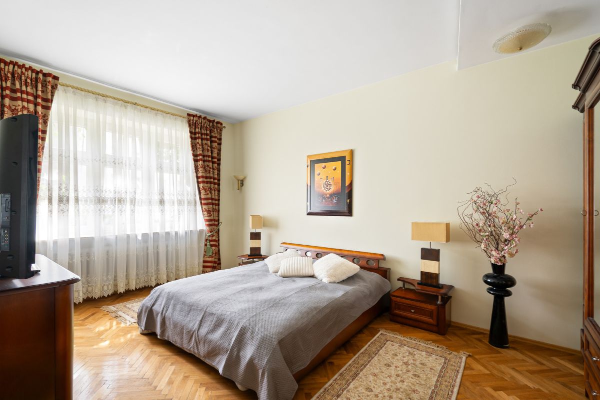 W przedpokoju, sypialni oraz salonie oryginalny odrestaurowany drewniany parkiet. W kuchni i łazience gres.