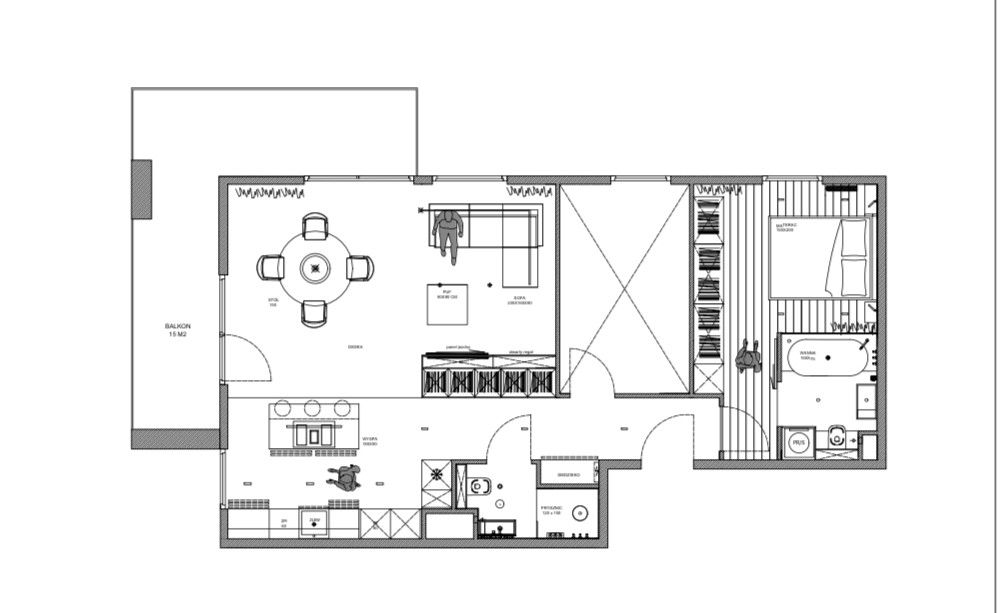 Układ mieszkania stwarza wiele możliwości. Pierwotnie lokal 4- pokojowy, obecnie zaaranżowany został na lokal 3- pokojowy z przestronnym salonem (powrót do układu czterech niezależnych pokoi jest możliwy oraz nie wymaga dużych nakładów finansowych).
