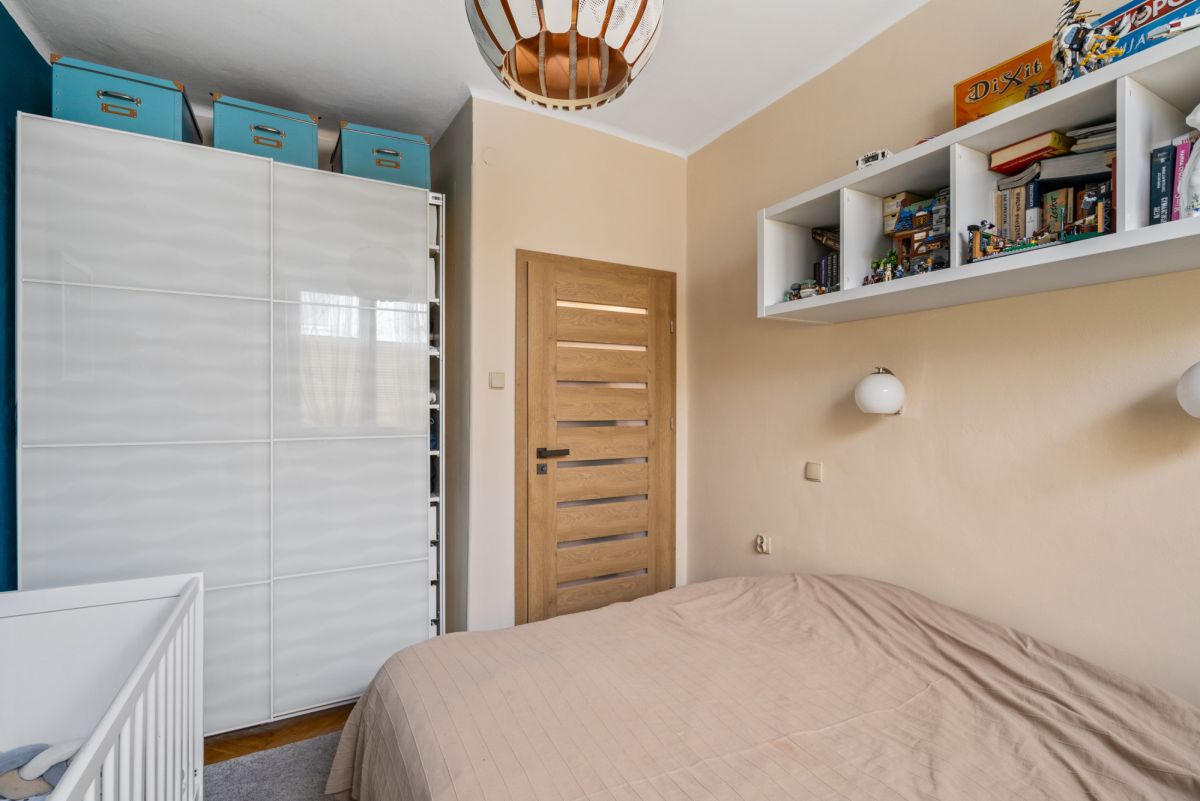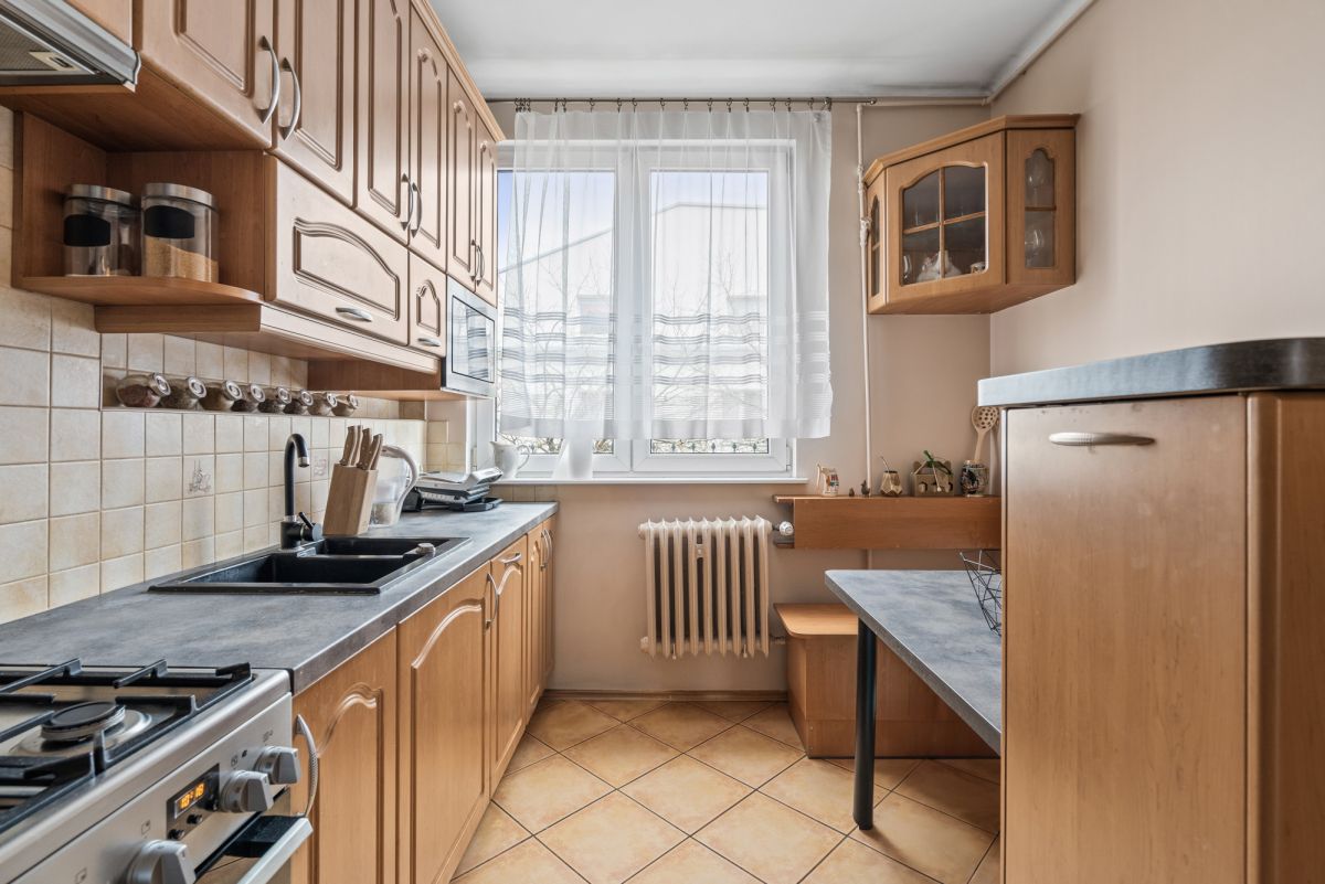 Lokal usytuowany jest na II piętrze z widokiem na dziedziniec, a wnętrze mieszkania jest bardzo słoneczne (ekspozycja południowa). Powierzchnia użytkowa nieruchomości wynosi 50 m2, a w jej skład wchodzą: pokój dzienny z małym balkonem, sypialnia, oddzielna kuchnia, przedpokój z szafą w zabudowie oraz łazienka z prysznicem. Mieszkanie w 2022 roku zostało wyremontowane, remont uwzględniał m.in. wymianę instalacji elektrycznej i wod-kan, cekolowanie i malowanie ścian.