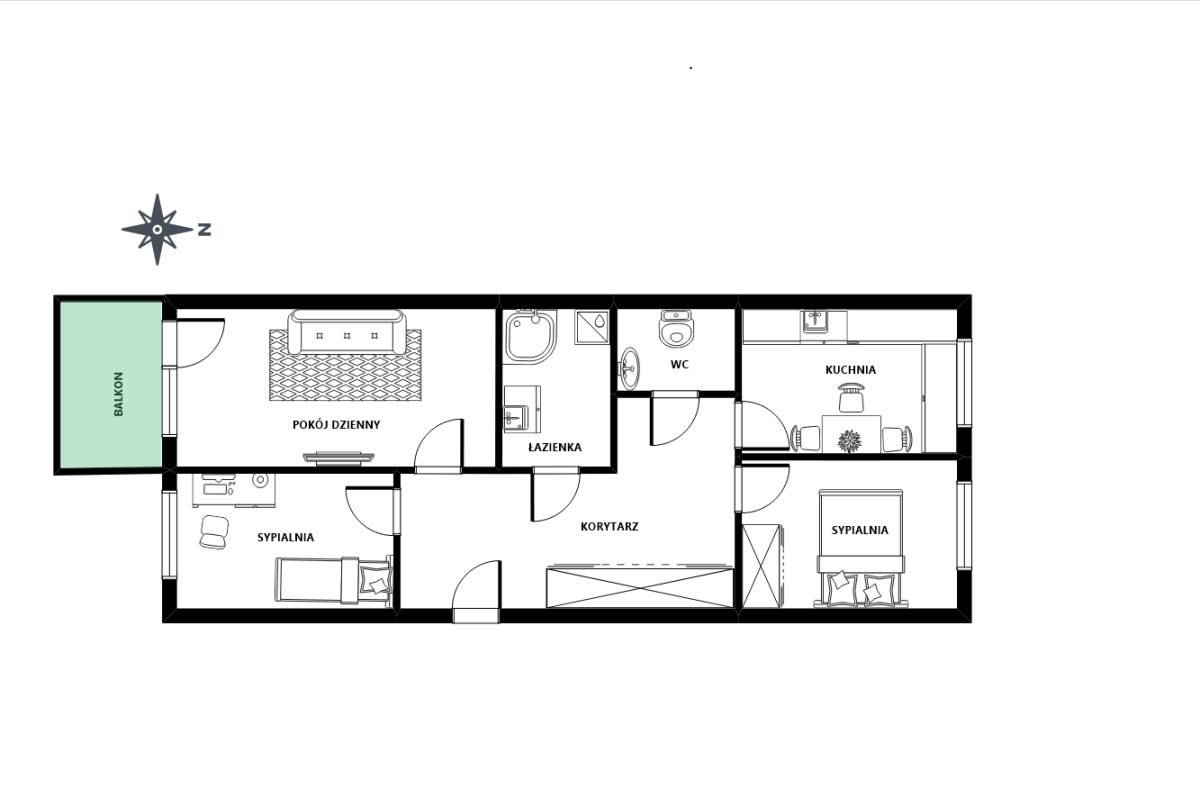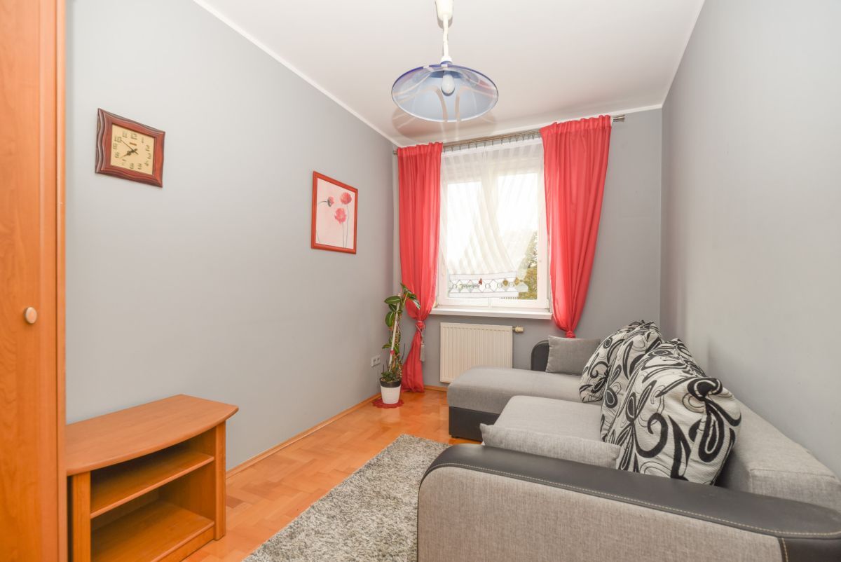 Mieszkanie jest ustawne, dwustronne i funkcjonalnie zaprojektowane – składa się z przestronnego salonu, oddzielnej, jasnej kuchni, dwóch sypialni, łazienki, WC oraz przedpokoju. Wnętrze jest wyjątkowo słoneczne i przytulne. Dodatkową powierzchnię niemieszkalną stanowią balkon oraz duża piwnica mierząca 7,30m2.Miejsca parkingowe ogólnodostępne znajdują się bezpośrednio przed budynkiem.